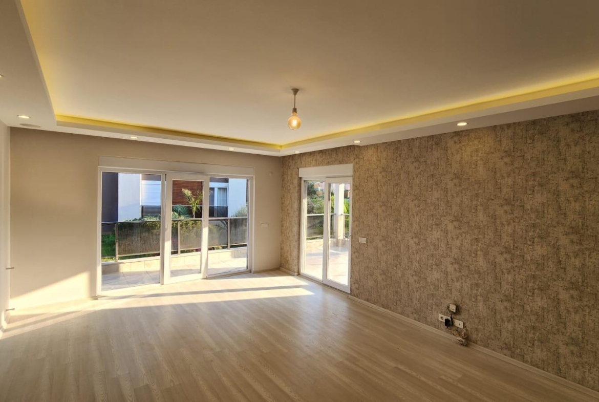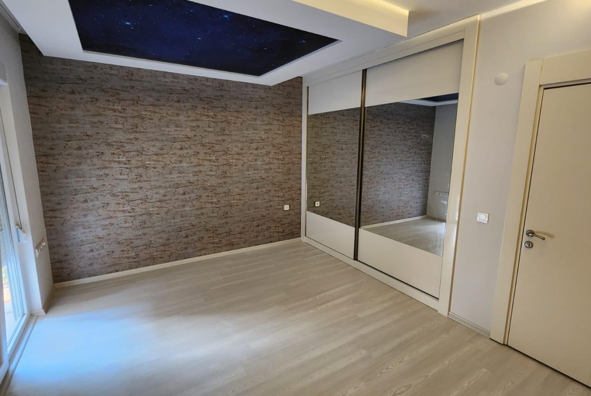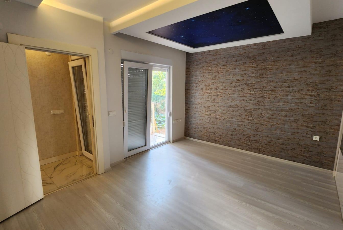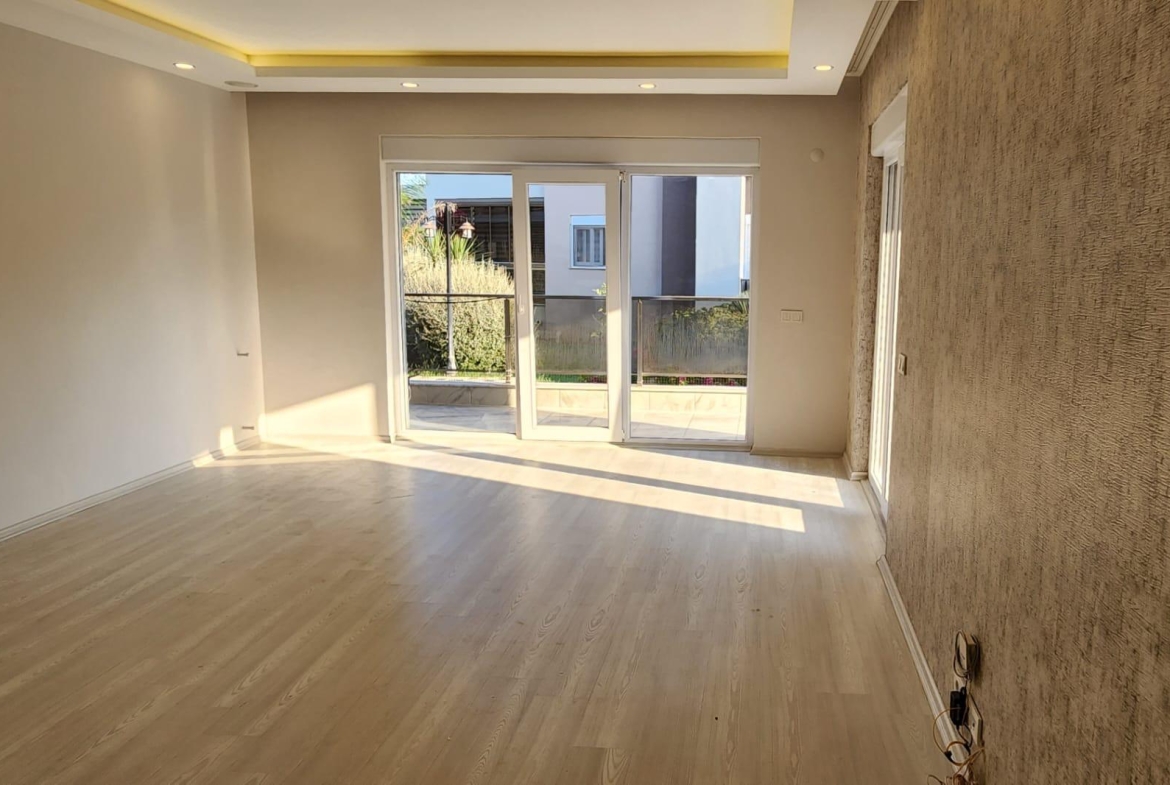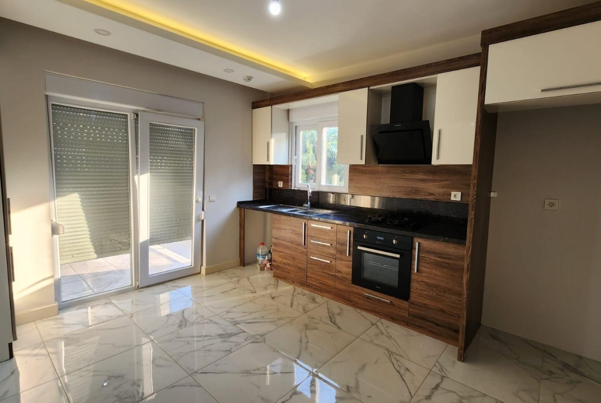 На продажу выставлена квартра на нижнем этаже в стиле « модерн». Квартира воплощает в себе совершенство современной архитектуры, инженерной мысли и великолепной работы дизайнеров. Она расположена в районе Дёшемеалты в комфортабельном жилом комплексе. В услуги которого входят: большой бассейн, детская площадка, фитнес зал, охраняемый въезд, парковка, круглосуточная охрана и многое другое. На приусадебном участке разбит ландшафтный сад. . Жилая площадь здания 170 кв.м., в нее входят большая гостиная, отдельная комфортабельная кухня, три спальни и две ванные комнаты. Вилла в три этажа. На первом этаже расположены гостиная , отдельные кухня и гостевой санузел. Из холла широкий коридор ведет в просторную гостиную с большими окнами и стеклянными дверьми, ведущими в сад и к бассейну. Одна из стен оборудована под тв сет.